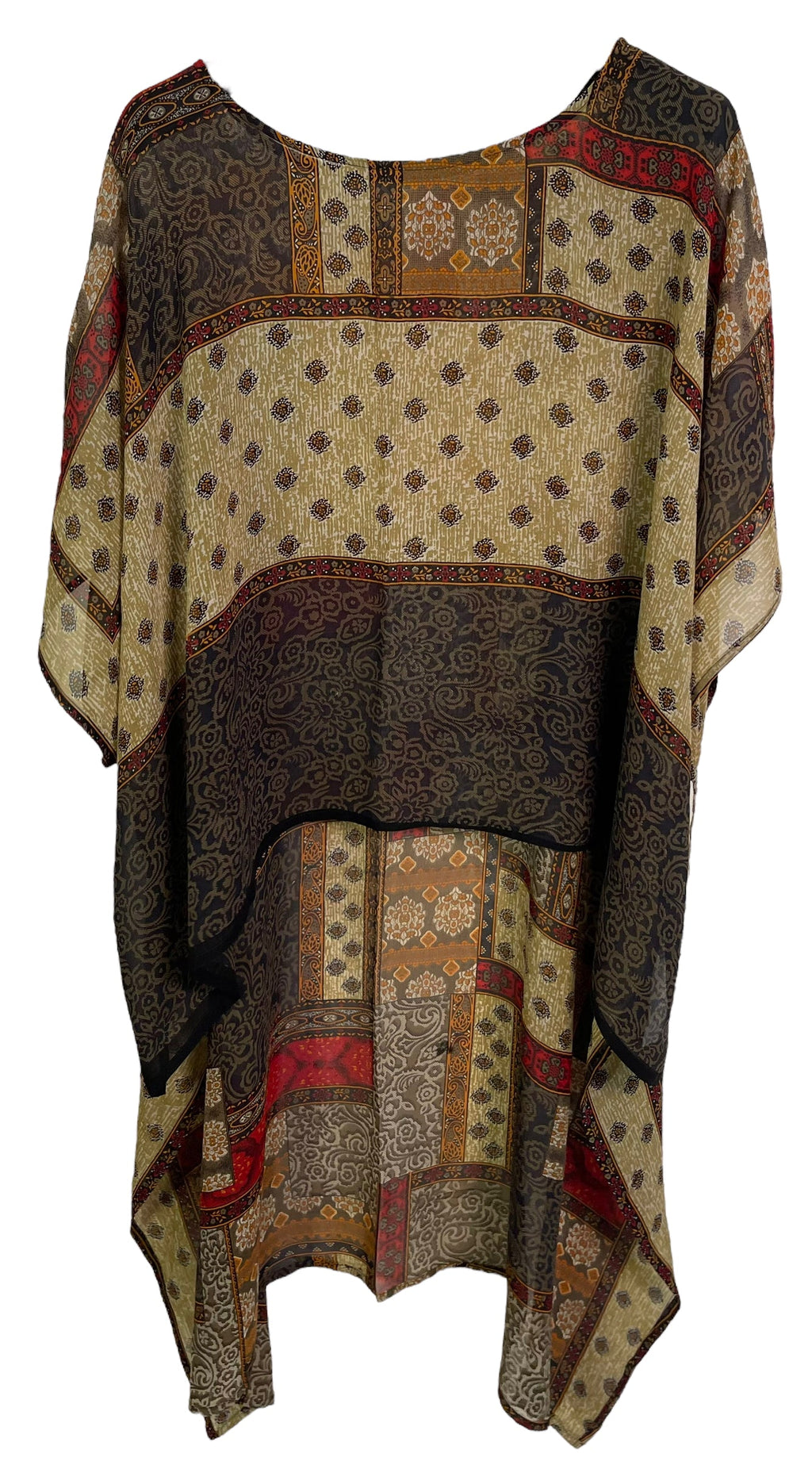 SOLD PRG6141 Sheer Avatar Pure Silk Short Kaftan Tunic without Slits