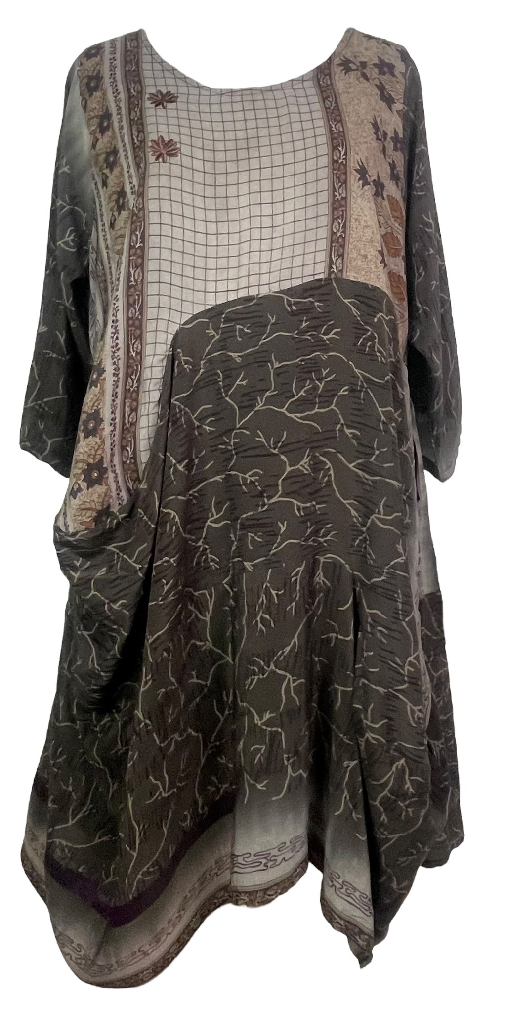 SOLD PRC7815 Avatar Pure Silk Sculptural Long Tunic Dress
