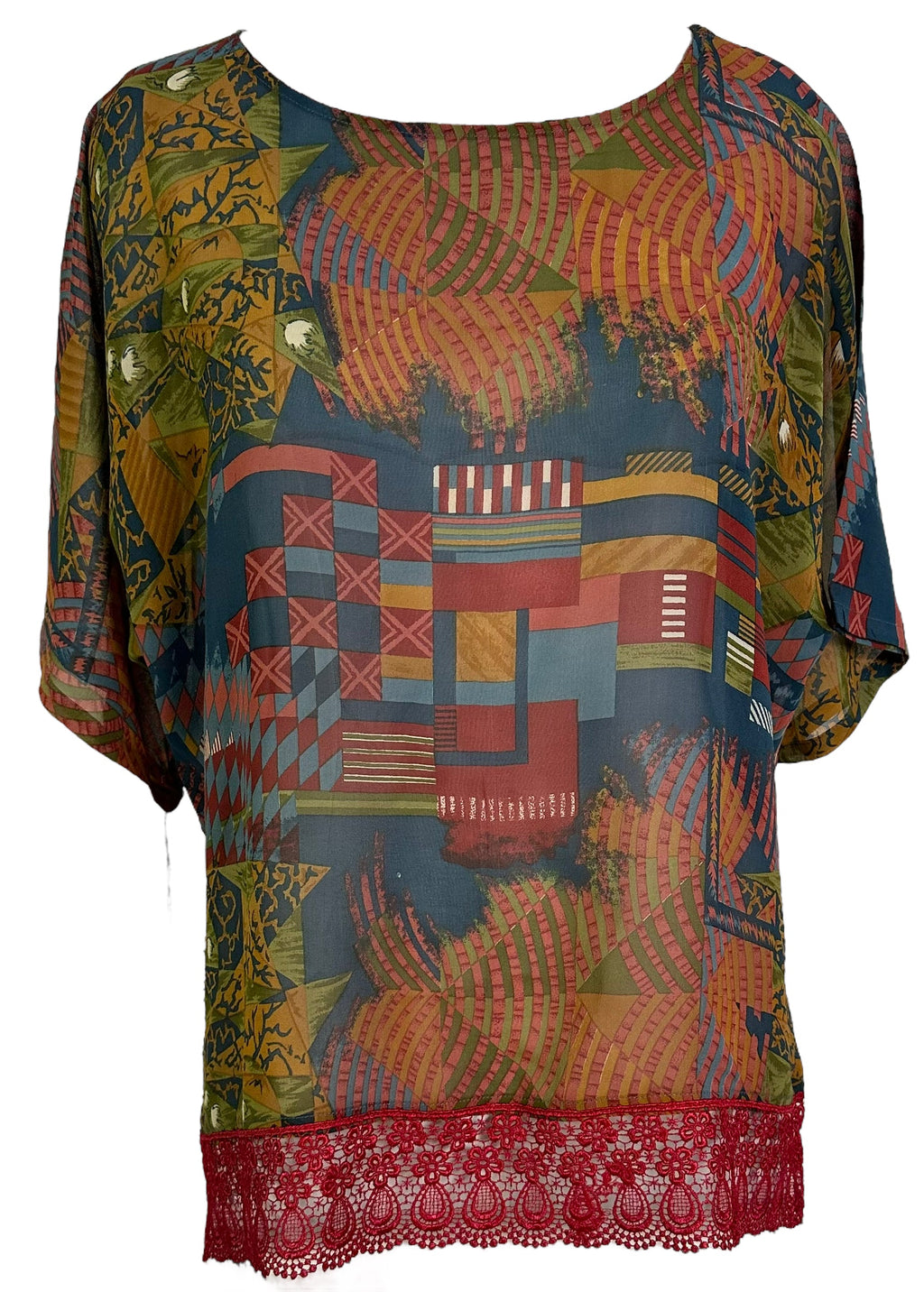 PRG6254 Sheer Avatar Pure Silk Side Slit Top