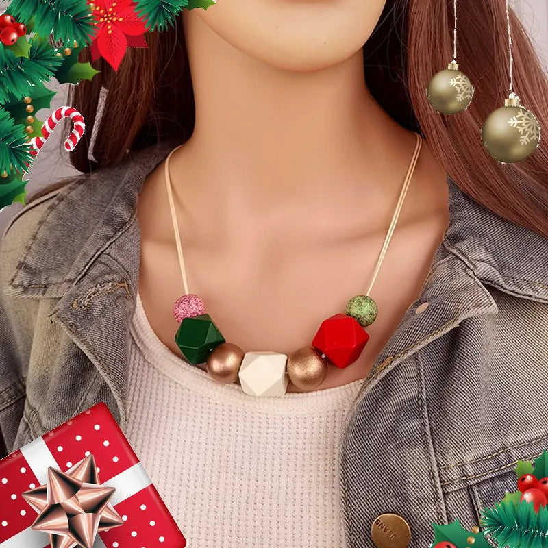 Women's Pendant Necklace Snowflake Wooden Geometric Design