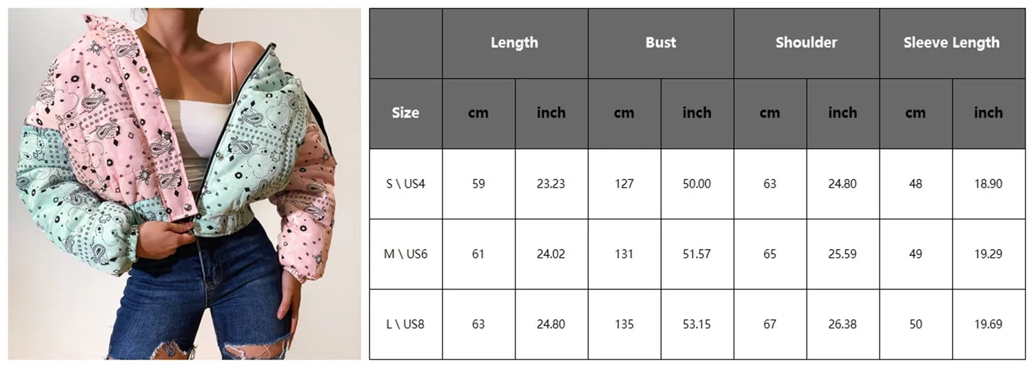 Autumn Winter Fashion Women's Colorblock printing Long Sleeve Zipper Cotton Padded Jacket Coats