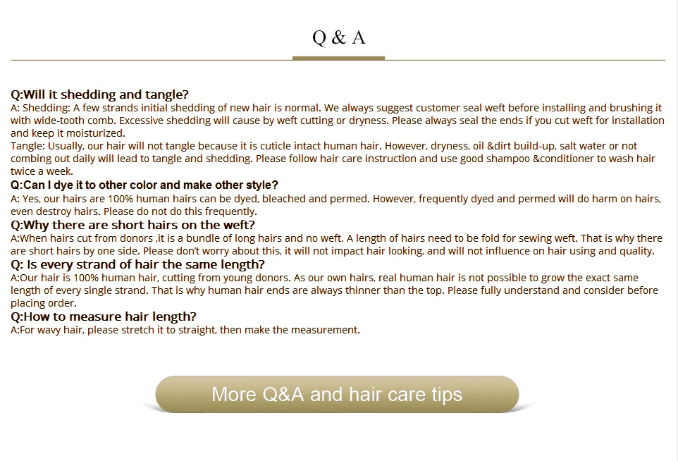 - Hair Material: 10A Remy Human Hair, can be dyed, bleached, straightened, permed or restyle