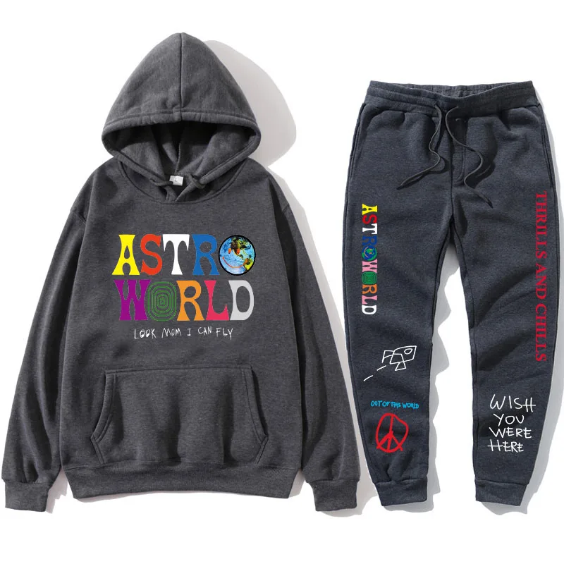 TRAVIS SCOTT ASTROWORLD HOODIES Letters Print Sweatshirt+Sweatpant men's Pullover Sweatshirt Hoodie Sports Pants tracksuit men