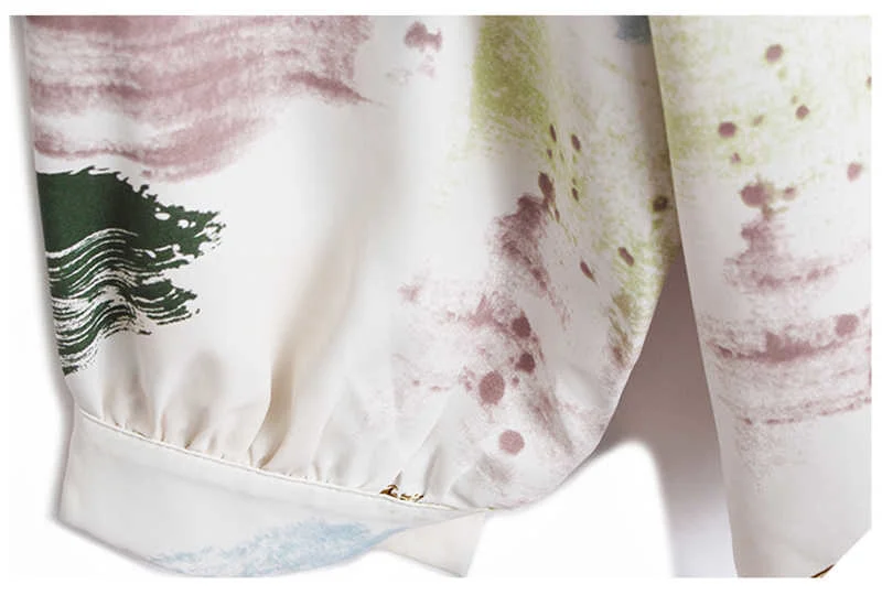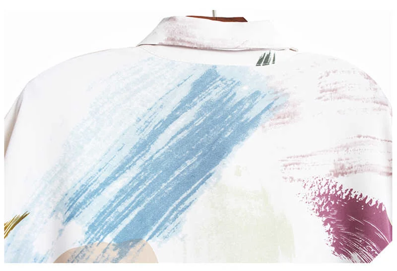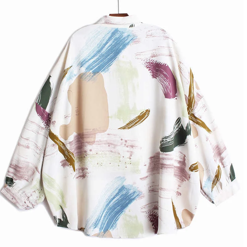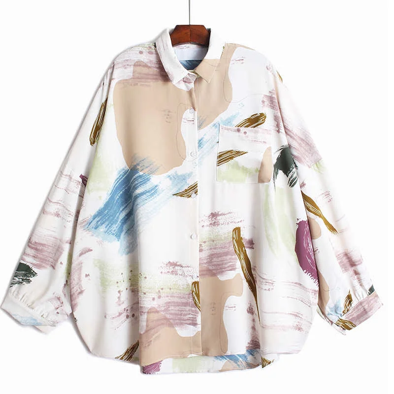 Women White Big Size Printed Pocket Blouse New Lapel Long Sleeve Loose Fit Shirt Fashion Tide Spring Summmer  1DD8214
