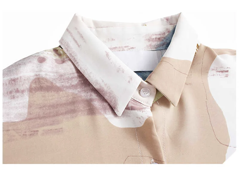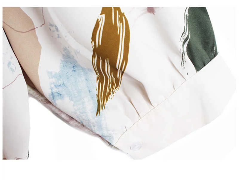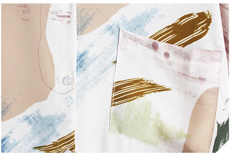 Women White Big Size Printed Pocket Blouse New Lapel Long Sleeve Loose Fit Shirt Fashion Tide Spring Summmer 1DD8214