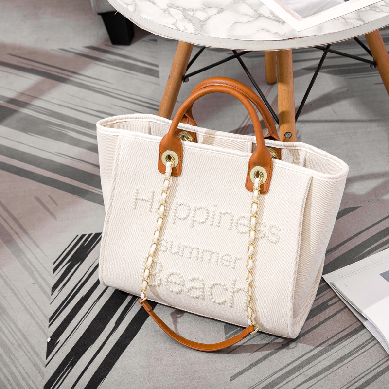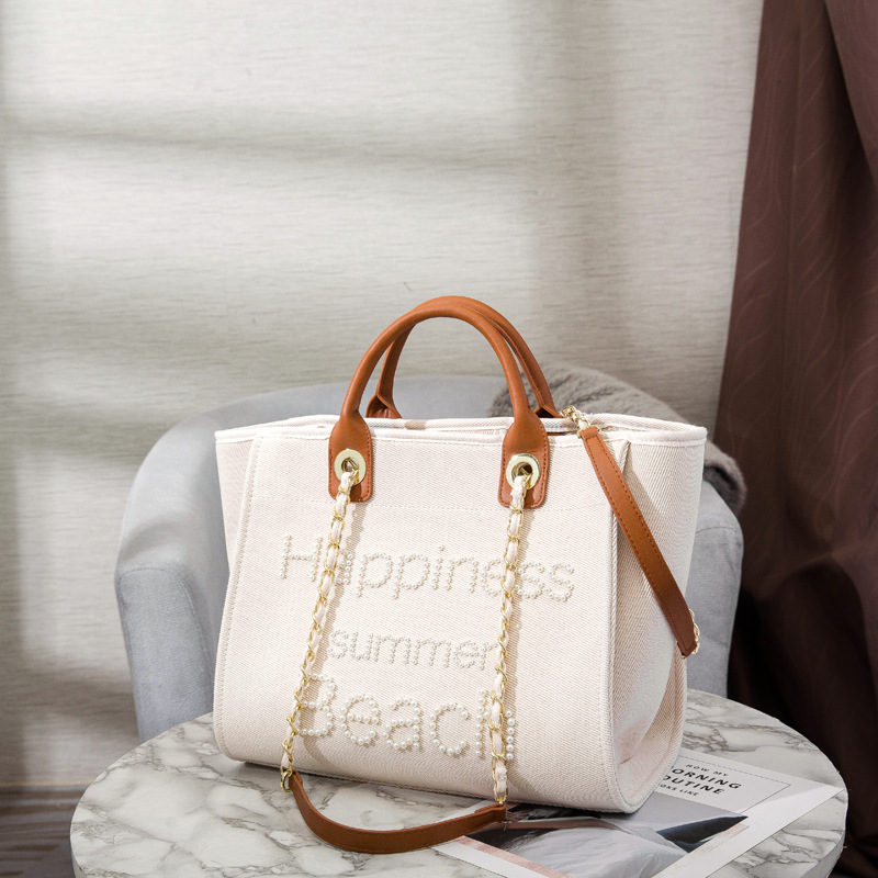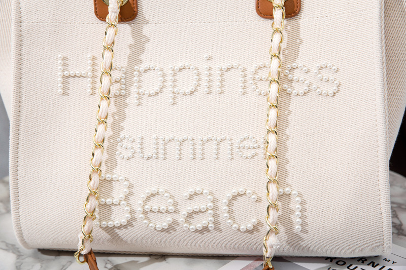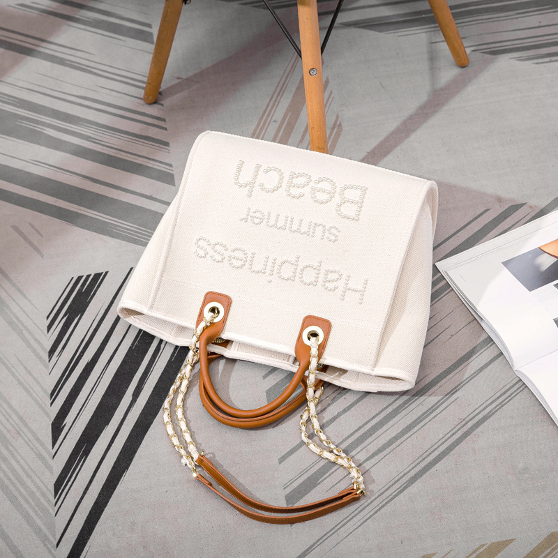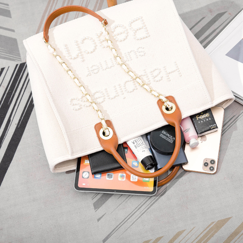 Women's Bag Small Fragrant Wind Zhen Handmade Bead Embroidery Canvas Bag Large Capacity Bag Single Shoulder White Mother Bag Large Bag