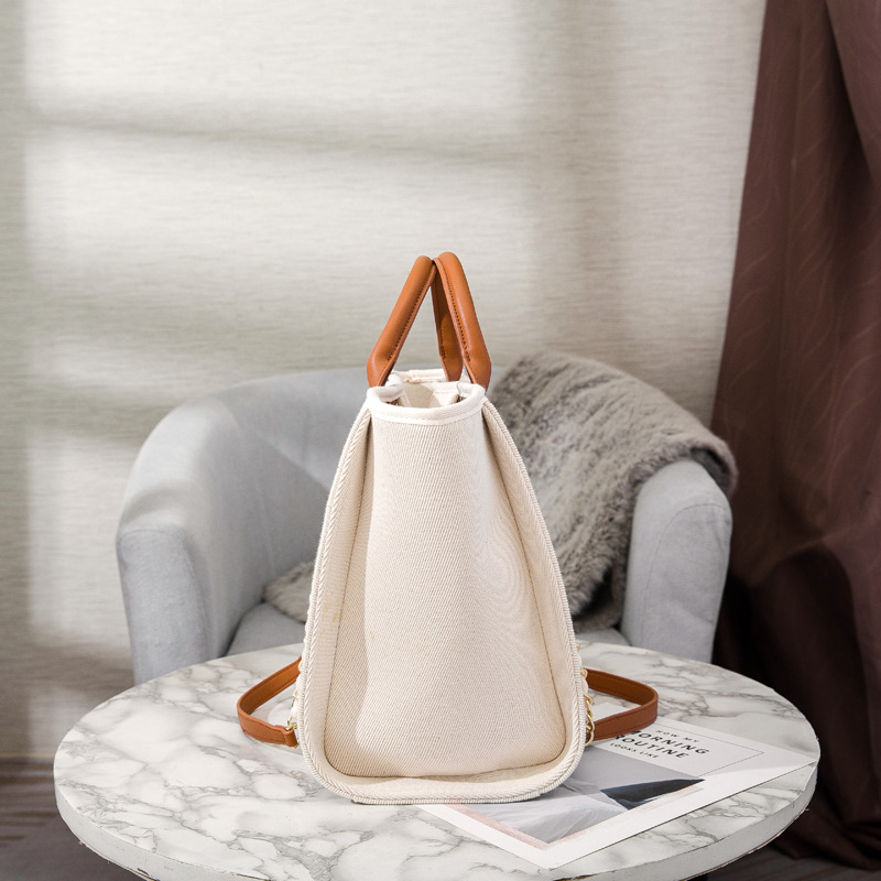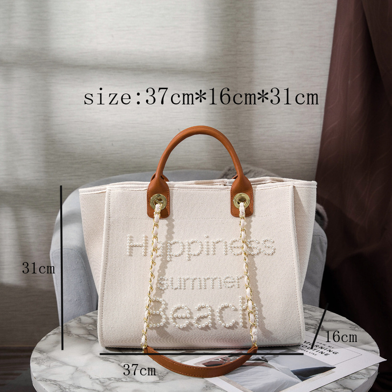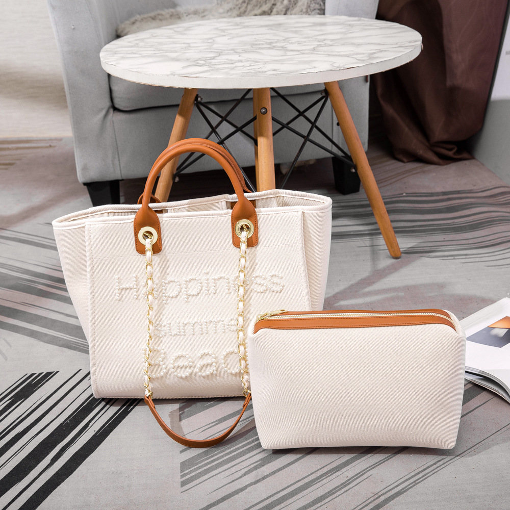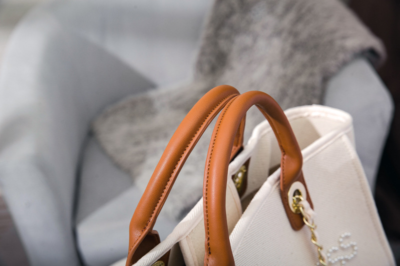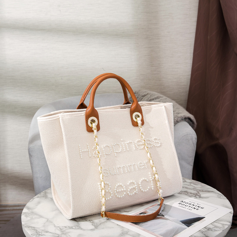 Women's Bag Small Fragrant Wind Zhen Handmade Bead Embroidery Canvas Bag Large Capacity Bag Single Shoulder White Mother Bag Large Bag
